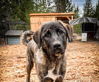 Our Anatolian Shepherd Dog puppies are brindle. Schnoodle puppies include sable, black, and black and tan. Colors will vary depending on the parent dogs.