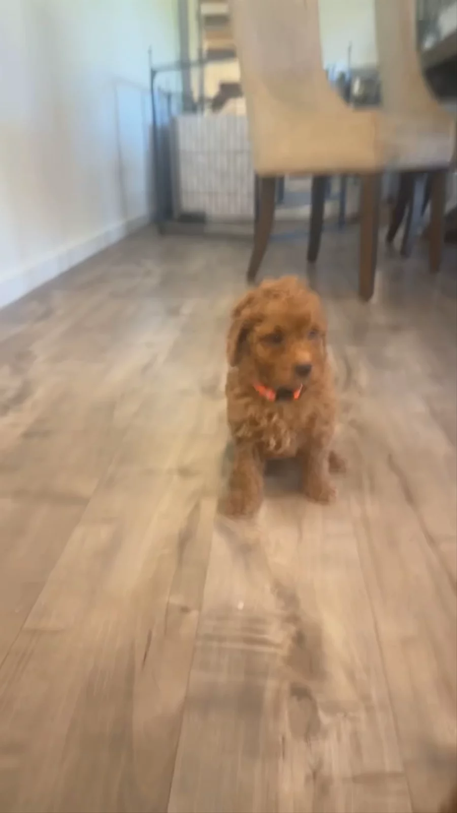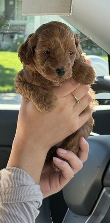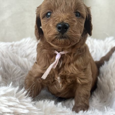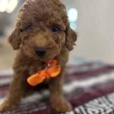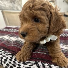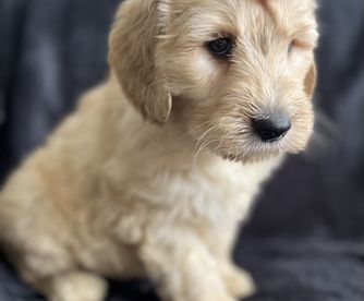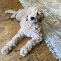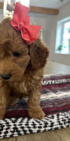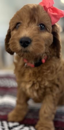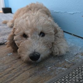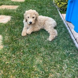 Lucy is a sweet carefree fun mini Goldendoodle. She is about 12lbs and loves to cuddle. She is little but mighty and an excellent mother. She loves playing with her sister Riley and loves going for walks at the park.