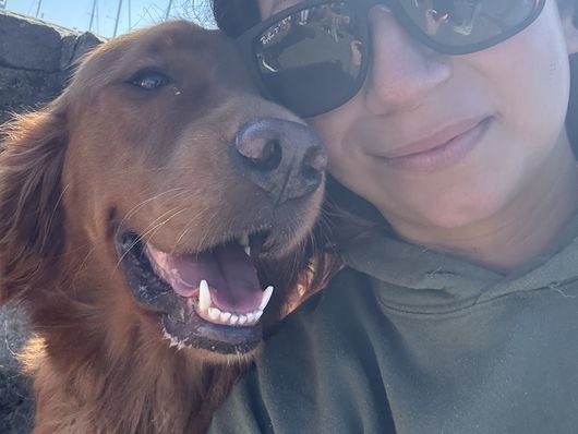 Someone just looking for a companion! She enjoys hikes,car rides and playing fetch! And indoors she will cuddle as long as you let her !