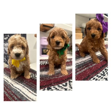 Our Goldendoodle puppies include miniature, medium, and standard sizes. Sizes will vary depending on the parent dogs.
