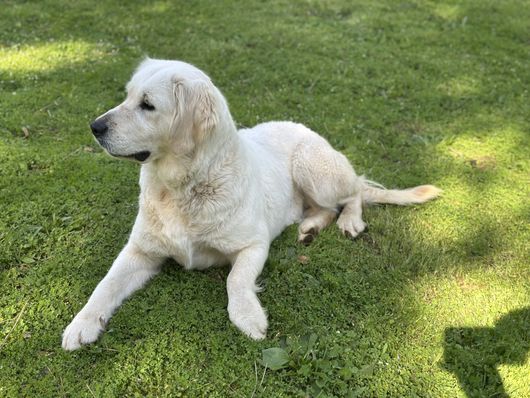 MJ is such a beautiful amazing retriever! I feel so blessed. She has such a warm gentleness about her. When you meet her you will know exactly what I'm talking about! She loves people! She is so smart loves to play fetch and when indoors she will just lay at your feet!