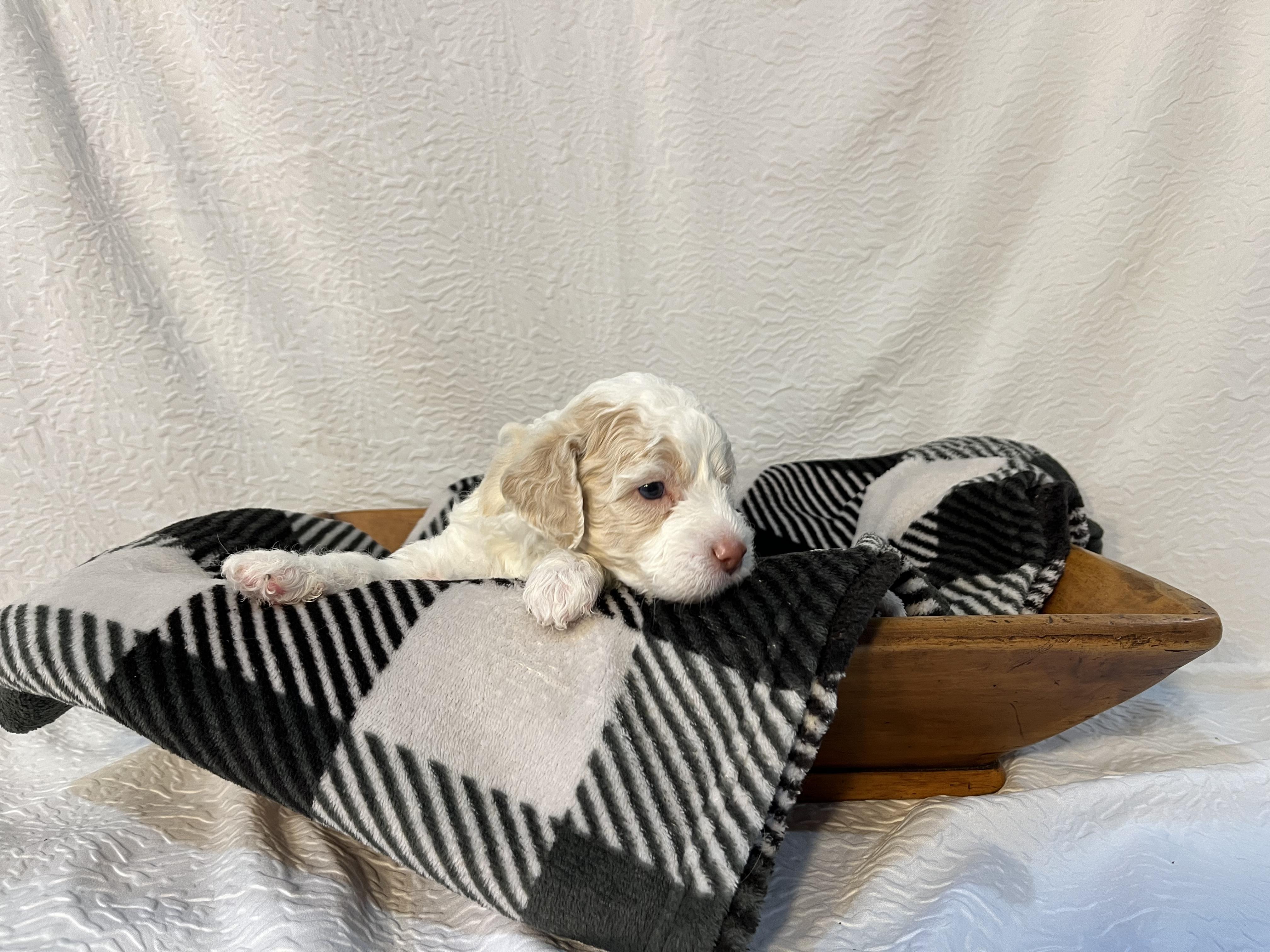 Marley is playful, intelligent, and spunky. She loves to be taught new tricks, and is great with children as well as other animals. She has a clean record through her genetic testing and health screenings. She is CKC registered.