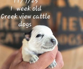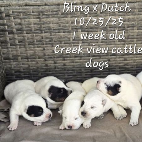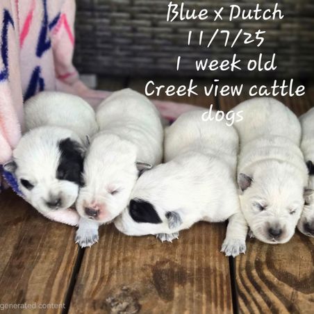Born 10/25/25 — these sweet Creek View Cattle Dog pups are officially 1 week old! 💕
