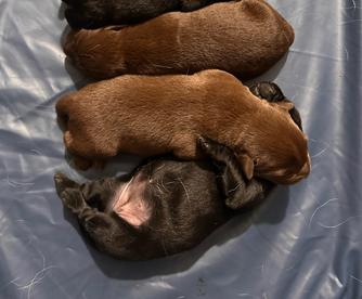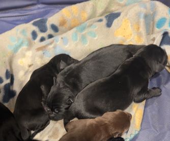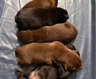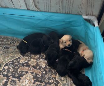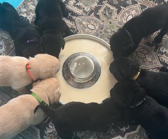 Our puppies include black, chocolate, and yellow. Colors will vary depending on the parent dogs.