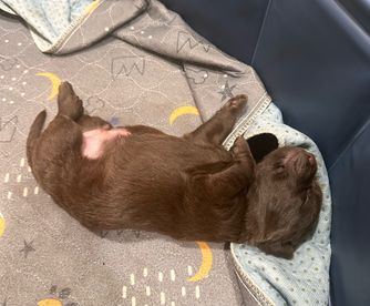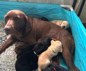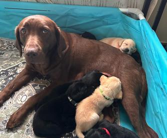 My mother bred labs and springer spaniels while I was growing up. I would set up a cot next to the whelping box and stay up all night with the momma dogs while they had their puppies. Eventually I took over for my mom and even after I’ve grown up and moved out and had my own children I continue to breed and now I get to share the experience with my daughter who is just as in love with the miracle.