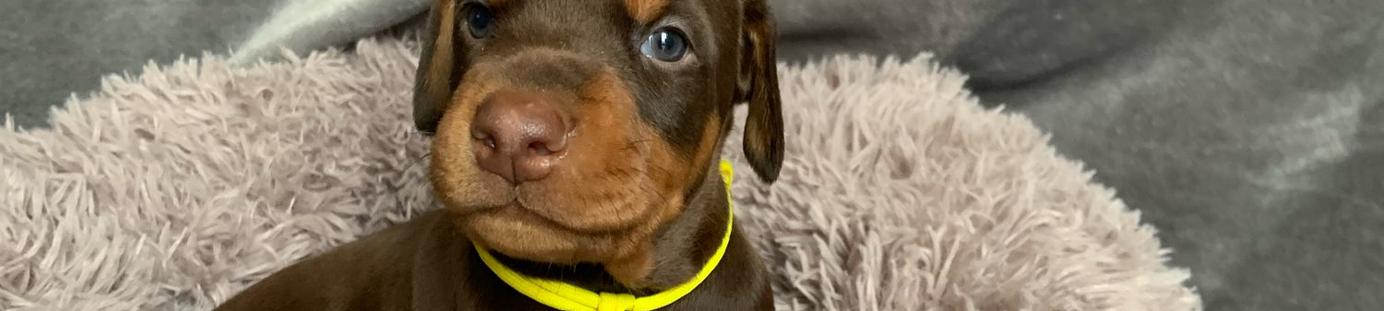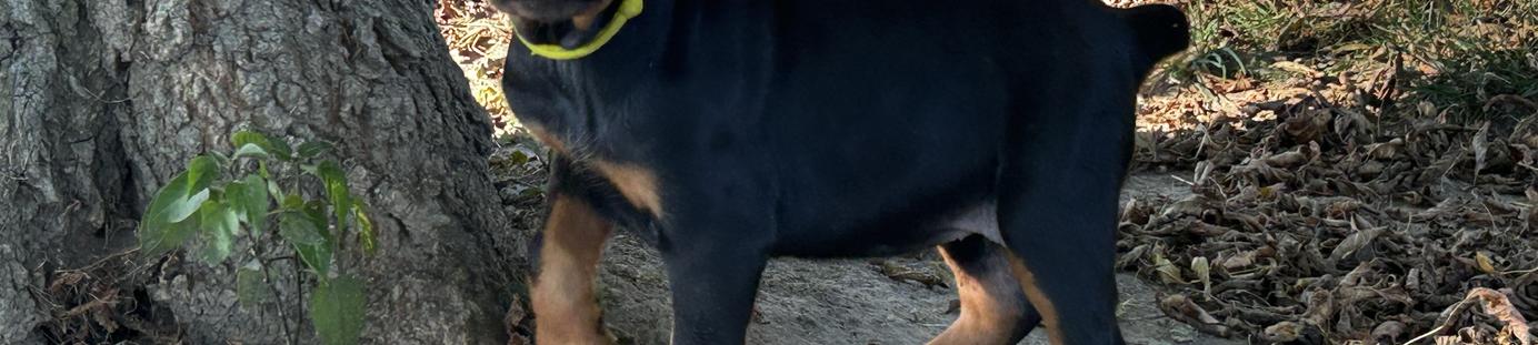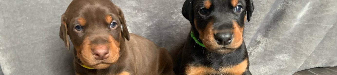 Our puppies include black and rust and red and rust. Colors will vary depending on the parent dogs.