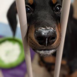 Riley is a female Doberman Pinscher over 3 years old. Carefully selected as a great representative of her breed, Ashley decided to make her part of their program. Ashley has passed Good Dog’s screening process, which involved a review of their breeding practices, environment, and the mental and physical health of their dogs.