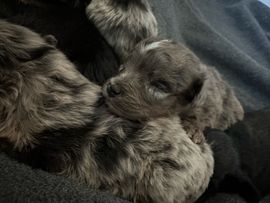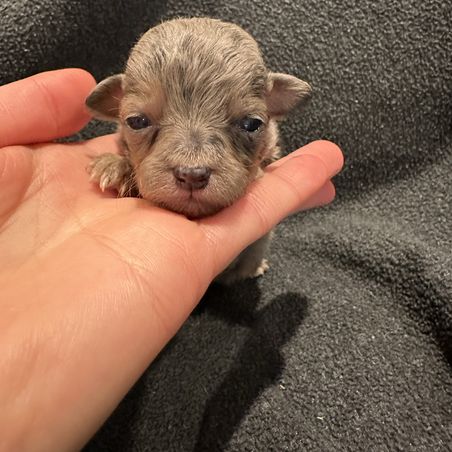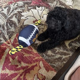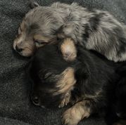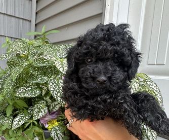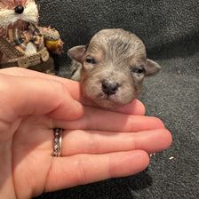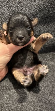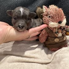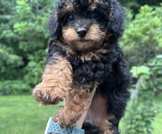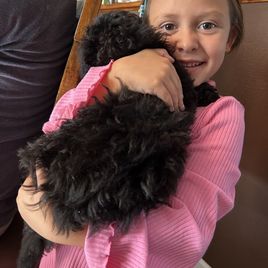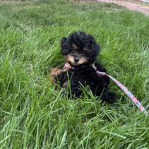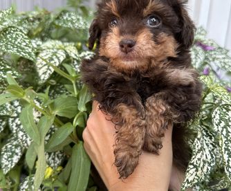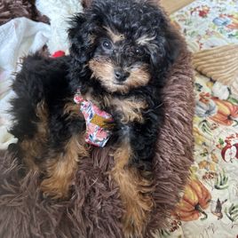 Annie is a black and red phantom Havapoo! She is our daughters little companion. They do everything together. Annie is a 6lbs and Such a loving and sweet. Full clear for genetic health testing by parentage.