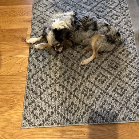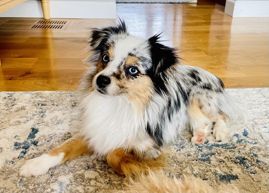 Mabel is a sweet ASDR Tiny Toy Australian Shepherd . She is a Blue Merle with double blue eyes weighing in at 7 lbs. Very sweet and loves to follow me everywhere. She is low drive for herding. Mabel is extremely smart and very obedient. A loyal and smart companion.