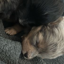 Sweet little babies are now three weeks old. They still sleep most of the day:) they love being held and enjoy puppy snuggles💕