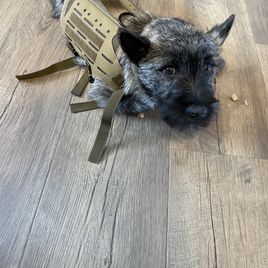 Harley is a female Cairn Terrier. Carefully selected as a great representative of her breed, Caleb decided to make her part of their program. Caleb has passed Good Dog’s screening process, which involved a review of their breeding practices, environment, and the mental and physical health of their dogs.