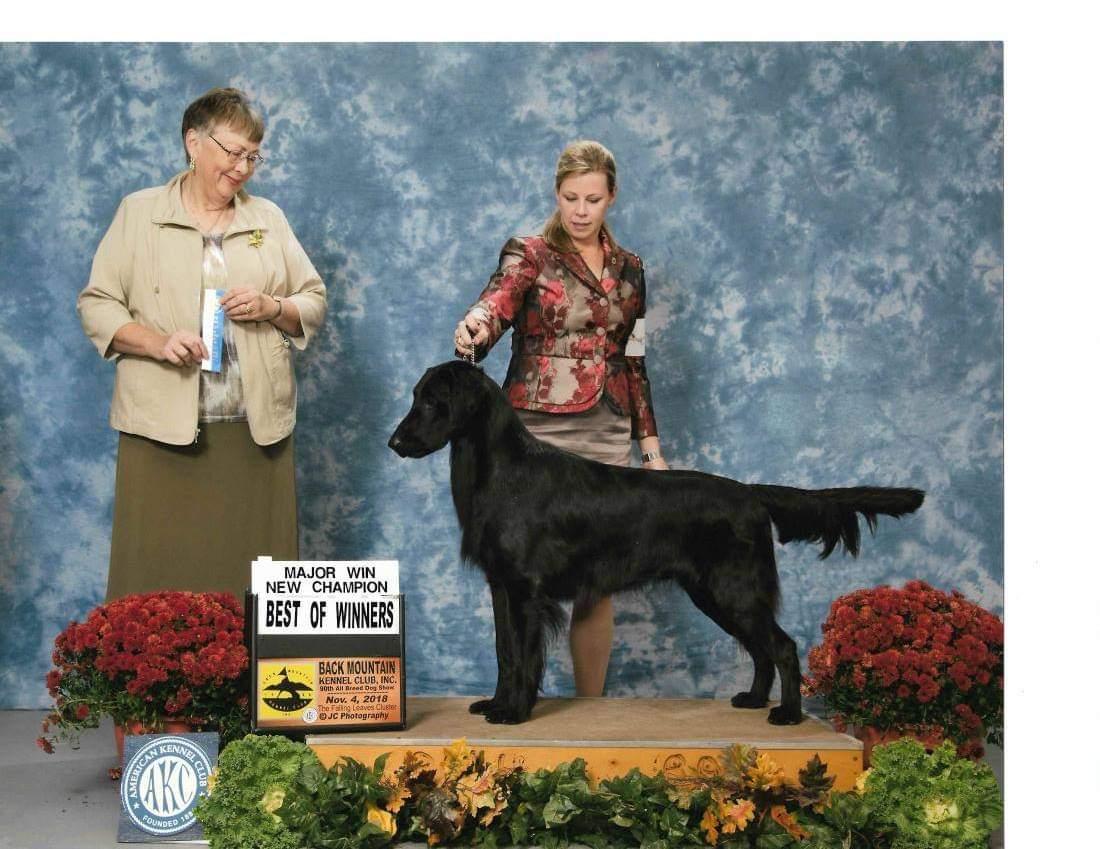 Merri is a beautiful, loving, intelligent Flat-Coated Retriever girl. We're very excited about her first litter. She has all OFA Health Clearances