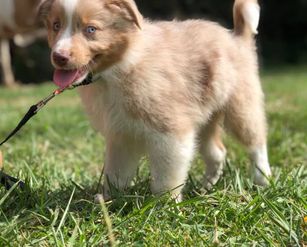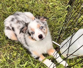 Our puppies include blue merle, black tri, red tri, and red merle. Colors will vary depending on the parent dogs.