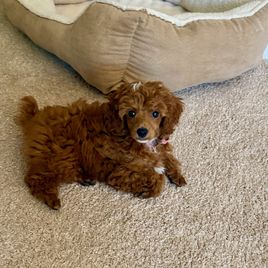 I truly enjoyed working with Cherie from Crimson Ridge Poodles to find my new four-legged family member. Cherie was very responsible, responsive, and kind. She happily answered all of my questions, provided me with copies of health certificates/genetic testing for the parents of the little cutie that I wanted to adopt, and was happy to video chat with me and the puppies which really helped me to feel confident and comfortable before I made my decision. She then made the entire process very simple and easy. Cherie knows her stuff and really cares about her fur babies! She even invited me to my new puppy's vet check appointment before coming home via video chat! She really went over and above! I was hesitant initially about getting a puppy online without meeting the puppy in person first, but Cherie put any concerns I had to rest with her transparency and professionalism. My little Daisy is adorable and a true joy. I feel lucky to have her. Thank you, Cherie!