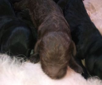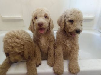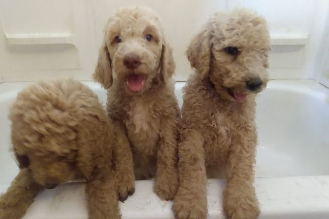 Our Goldendoodle puppies include cream, apricot, chocolate, and black. Poodle puppies include apricot, black, blue, brown, cream, and silver. Colors will vary depending on the parent dogs.
