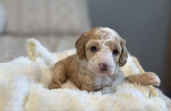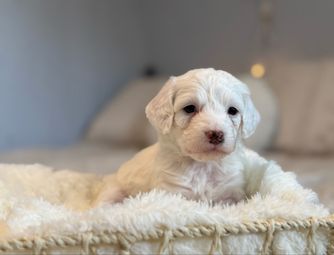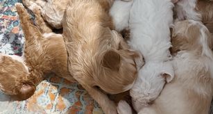 I’d never bought a dog from a breeder before or had a puppy, and Kristie was a great person to learn from. She responded to all my messages promptly, answered my many, MANY questions, and sent tons of photos. When the big day came to get our Luna, a cockapoo, Kristie was going to fly to us with her. There was a snowstorm and her flight was cancelled, so we each drove about 12 hours to meet midway. She provided us not only with our wonderful dog, but also a bag of goodies (food, poop bags, a blanket with mama and litter mates’ accents, a squeaky toy with those scents, all vet records, and more). There were no surprises and in fact Kristie lowered the travel fee by several hundred dollars because we’d had to drive to meet her. I’ve sent her updates since getting Luna and she’s always responded, happy to see her thriving. An overall great experience!