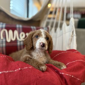 Ellie is a female Cockapoo. Carefully selected as a great representative of her breed, Kristie decided to make her part of their program. Kristie has passed Good Dog’s screening process, which involved a review of their breeding practices, environment, and the mental and physical health of their dogs.