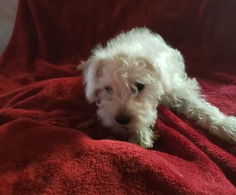 Our puppies include white, liver, and black and silver. Colors will vary depending on the parent dogs.
