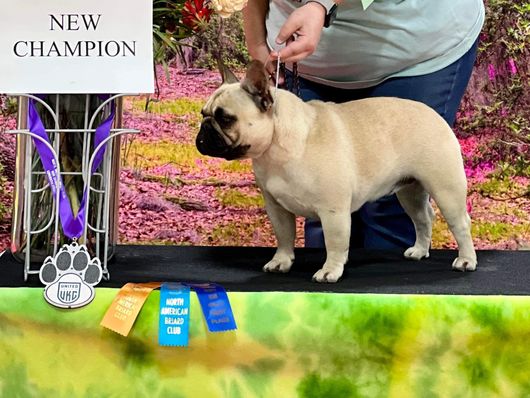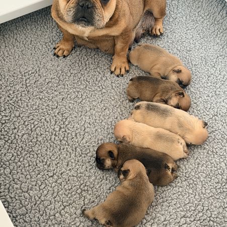 We take the health of our French Bulldogs very seriously. We know how important it is that our breeding dogs’ health is as good as it can be to ensure the puppies’ health is similarly sound. That's why we do full genetic panel tests in addition to OFA patellas, cardiac, eyes, hips, and elbows.