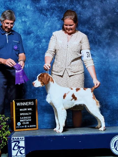 A solid, honest working gun dog with good house manners. Developing a smooth run and handles kindly in the field. Loves people especially younger children. Totally outgoing with a typical brittany personality. In Sept with a 5 pt win in Nebraska he finished his Field Championship so now he is a dual champion