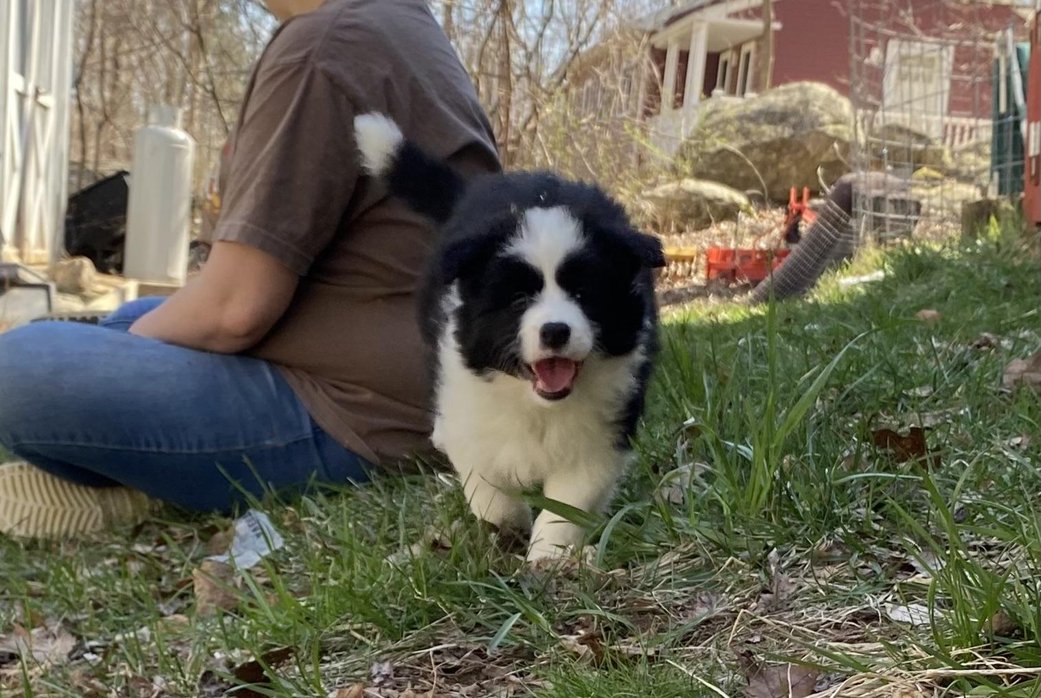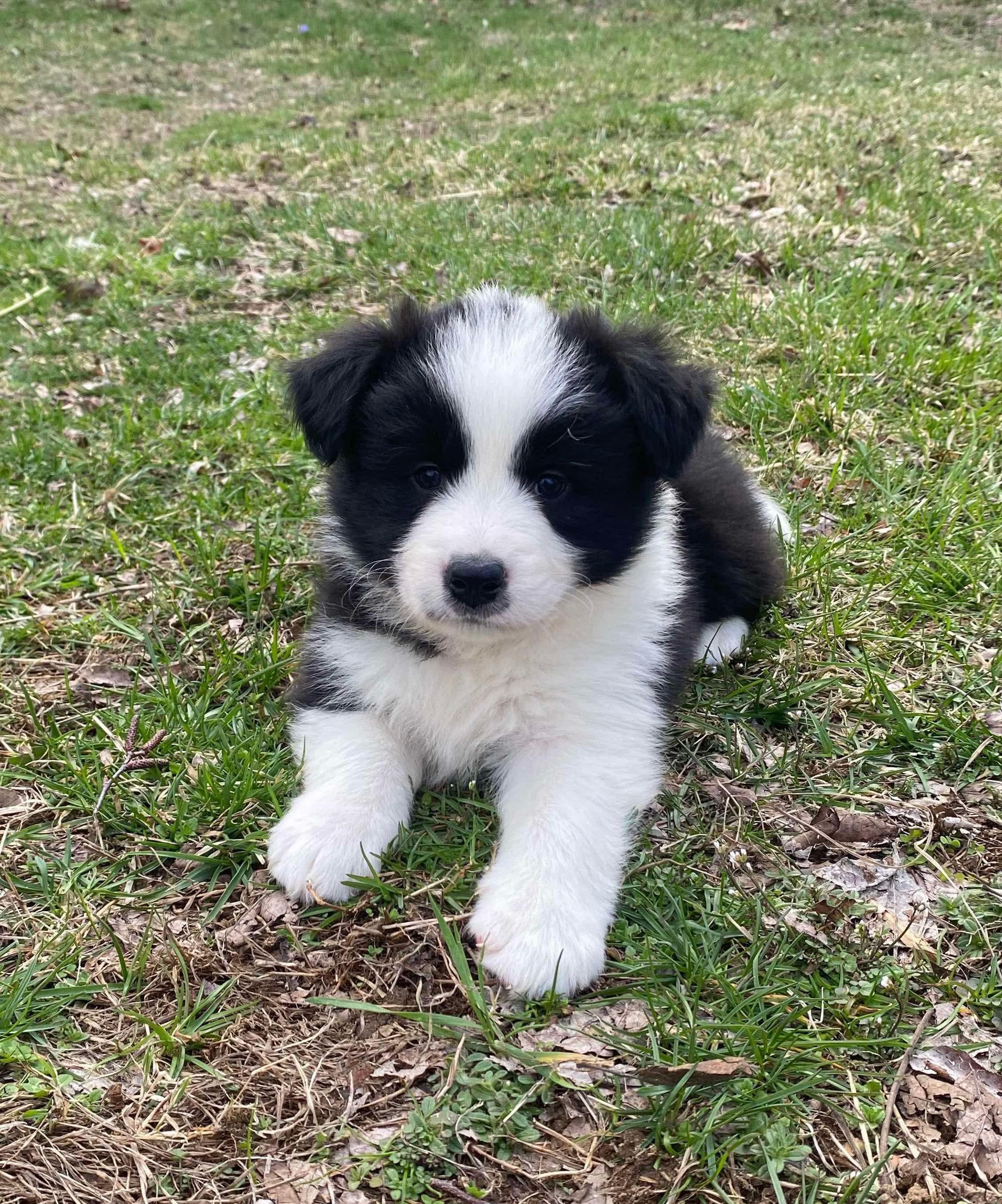 Our puppies include black and white, blue merle, black, gold, white and blue merle, and white and gold. Colors will vary depending on the parent dogs.