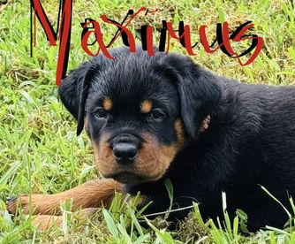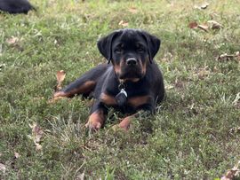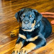 This boy is still looking for his forever home! Champion bloodlines! Playful, loving Rottie puppy!!