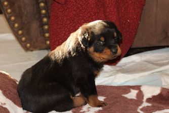 Our puppies include black and tan and black and mahogany. Colors will vary depending on the parent dogs.