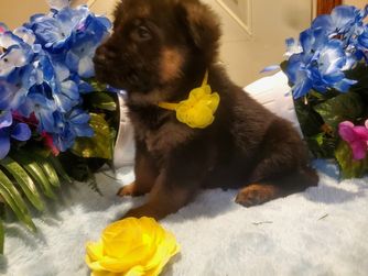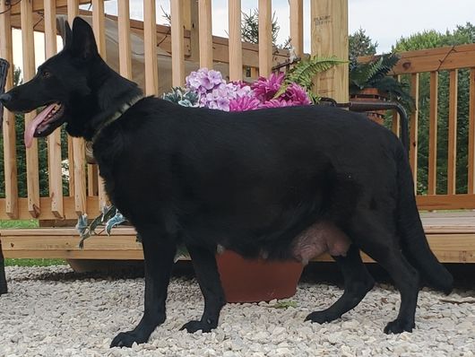 Heidi is a low drive Gsd from titled West German Lines and American Show lines. She has a beautiful soft loft coat. She is straight backed.