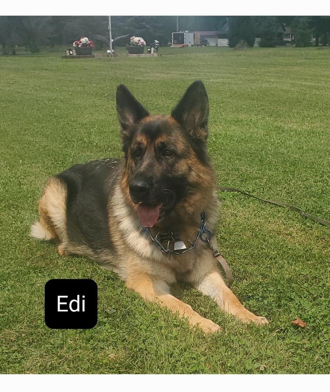 Edi is a female German Shepherd. Carefully selected as a great representative of her breed, Tresa decided to make her part of their program. Tresa has passed Good Dog’s screening process, which involved a review of their breeding practices, environment, and the mental and physical health of their dogs.