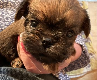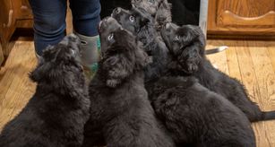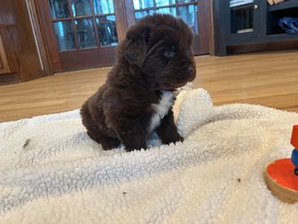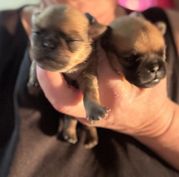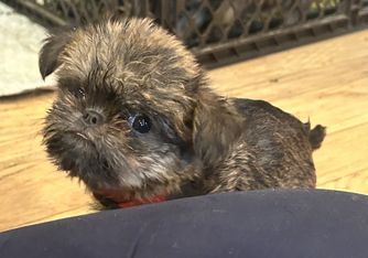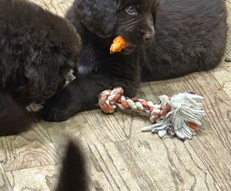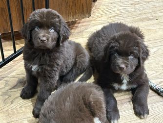 Our Brussels Griffon puppies include red, black and tan, and belge. Newfoundland puppies include white and black, black, brown, and gray. Colors will vary depending on the parent dogs.