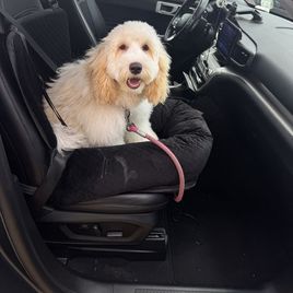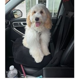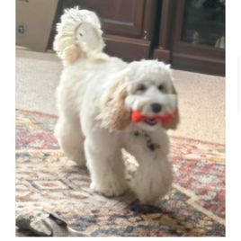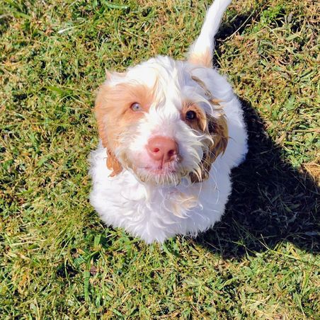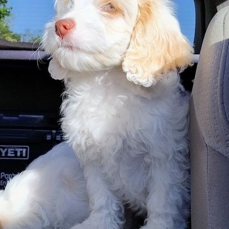 We discovered our puppy through Good Dog, a devoted company, and actually met her and her wonderful breeders Angela and her husband. We instantly fell in love with her and named her Brandy. We have had Brandy for 8 months. Everyone knows that Brandy is the joy of our heart! We enjoy caring for her. She is very affectionate and full of energy and likes to play catch. She is very smart that sometimes she can easily outsmart us. I have enjoyed training her with the assistance of Baxter & Bella Co home self training programs which Angela referred us to. During quiet time she likes to cuddle and even lay on your lap and loves to be hugged. As I hold Brandy her body is full of life and warm and soothing. Angela Gibson’s wonderful Australian Labradoodle, raised by her, are naturally bonding and Brandy certainly done that with us and us with her. She has a donut shaggy soft calming resting bag she can sink into for warmth and coziness for naps and a large playpen. We all eat together. Brandy is very rewarding to us. We love her and she loves us in return. I would definitely recommend adopting a pet from Angela. She has been amazing to work with all along even today. She has been patient with always answered all our questions about her puppies. Brandy is beautiful, we care for her, and the whole family is happy to have her!