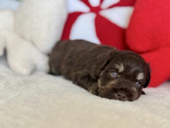 My husband and I had looked at other breeders around the area but after reading some of the other reviews from previous puppy owners that got their babies from Becky we had to go with her. We loved her application process because it shows how much she cares about where her little grand puppies go. Once it was getting closer for little mama to go into labor Becky made sure to keep us updated as things progressed until the babies arrived. They were tiny and required extra attention but she still found time to keep us updated. We adored getting the pictures of our little Aster and getting to watch him grow and change! I would recommend her to anyone and would go back again later. Thank you for all you do Becky!! Aster is perfect! Going through Good Dog made the process secure for both parties.