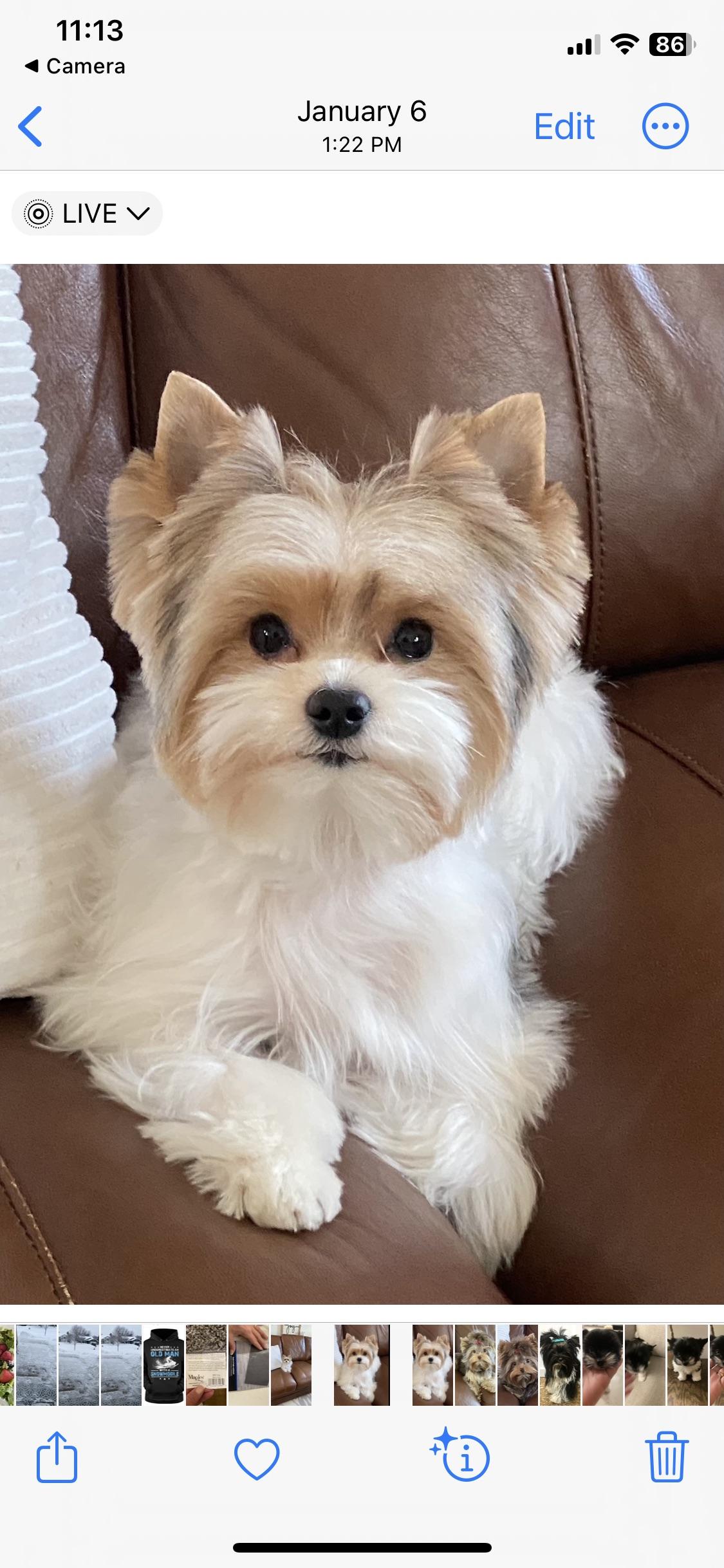 Josi is a female Yorkshire Terrier. Carefully selected as a great representative of her breed, Karen decided to make her part of their program. Karen has passed Good Dog’s screening process, which involved a review of their breeding practices, environment, and the mental and physical health of their dogs.