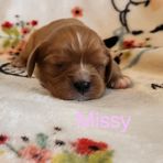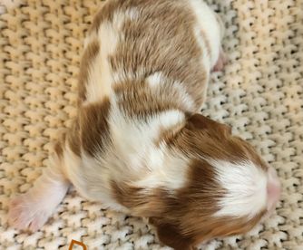 Beautiful Blenheim girl is as graceful and intelligent as she is playful and cuddly. She learns every trick we teach her with keen interest and quick obedience. She has been a great mother to her puppies and loves them dearly.