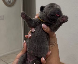 We are so happy with our pup Capone. He has a really good personality. His temperament is good, no food aggression, he’s great with the kids our youngest being 6 years old. I liked how Lauren kept me updated on Capone’s growth throughout the whole process. She’s amazing! She sent me videos, pictures and she answered all my questions. She even surprised me on my bday with our special delivery! Capone came with a very detailed care kit, food, a blanket from his litter and toy with everyone’s scent. Honestly this was the best experience I’ve had purchasing a pup. I’d do it again! THANK YOU <3