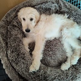 Let me begin by saying I do my homework! I researched over 70 breeders before settling on getting our pup from Cruzndoodles! I asked so so many questions some breeders thought I wanted to breed dogs. Nicole was so kind and never made me feel bad about my endless questions. We live in Colorado so Nicole helped us with so many pictures and videos! Nicole started training our pup too so by the time we got him he was sitting on command and started house training. His temperament is amazing! He's the chillest puppy I've ever seen. We just love our boy and know he will only get better with age!