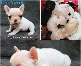 Cry Havoc Frenchies was a pleasure to work with. From the first phone call to the pick-up date, Crystal could not have been more helpful, informative and professional. We received almost daily updates along with pictures and videos of our pup. She provided DNA testing, vet reports and a wonderful care package for our Marty. Our vet said that he is in great health and is thriving thanks to great care Marty has received since day one. We are thrilled with the entire experience and highly recommend Crystal and Cry Havoc Frenchies!