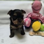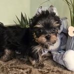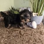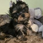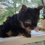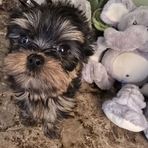 Lismore is AKC registered Blue & Gold yorkie. She comes from champion lines and has an excellent pedigree. She has big dark eyes and a fabulous silky black coat. She is a happy... really happy, snuggly and cuddly little girl.