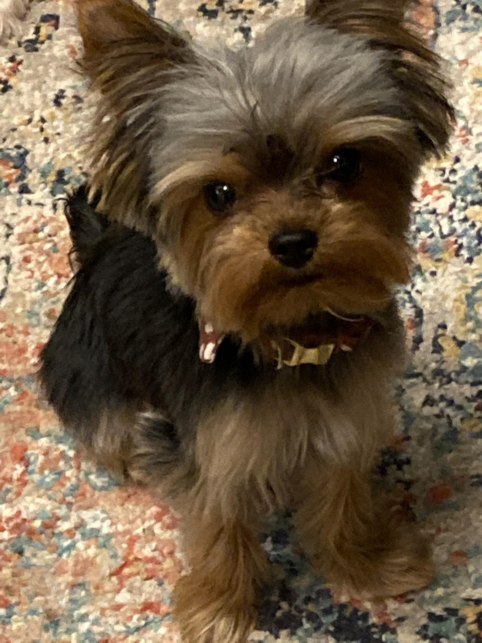 Swarovski is AKC registered blue & gold yorkie. He has an excellent pedigree and comes from Champion lines. He is a happy healthy 5 year old and is very, very nice looking dog. He is a very happy dog and loves all animals and people. Super friendly.