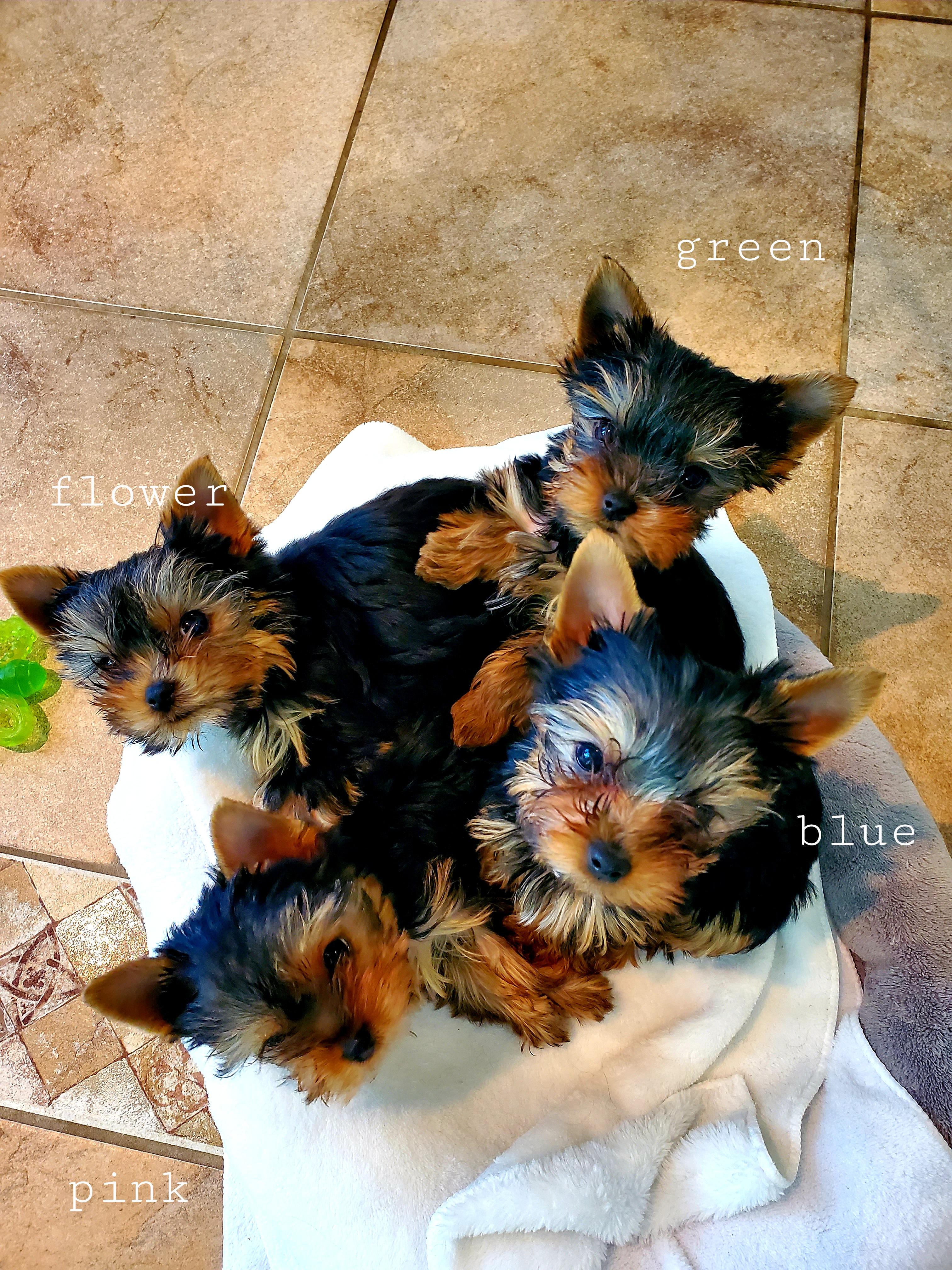 Lismore is AKC registered Blue & Gold yorkie. She comes from champion lines and has an excellent pedigree. She has big dark eyes and a fabulous silky black coat. She is a happy... really happy, snuggly and cuddly little girl.