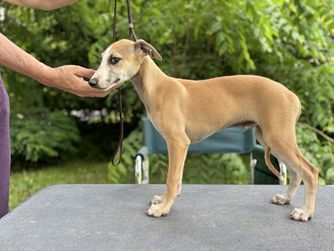 Layla is a female Whippet. Carefully selected as a great representative of her breed, Lynn decided to make her part of their program. Lynn has passed Good Dog’s screening process, which involved a review of their breeding practices, environment, and the mental and physical health of their dogs.