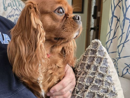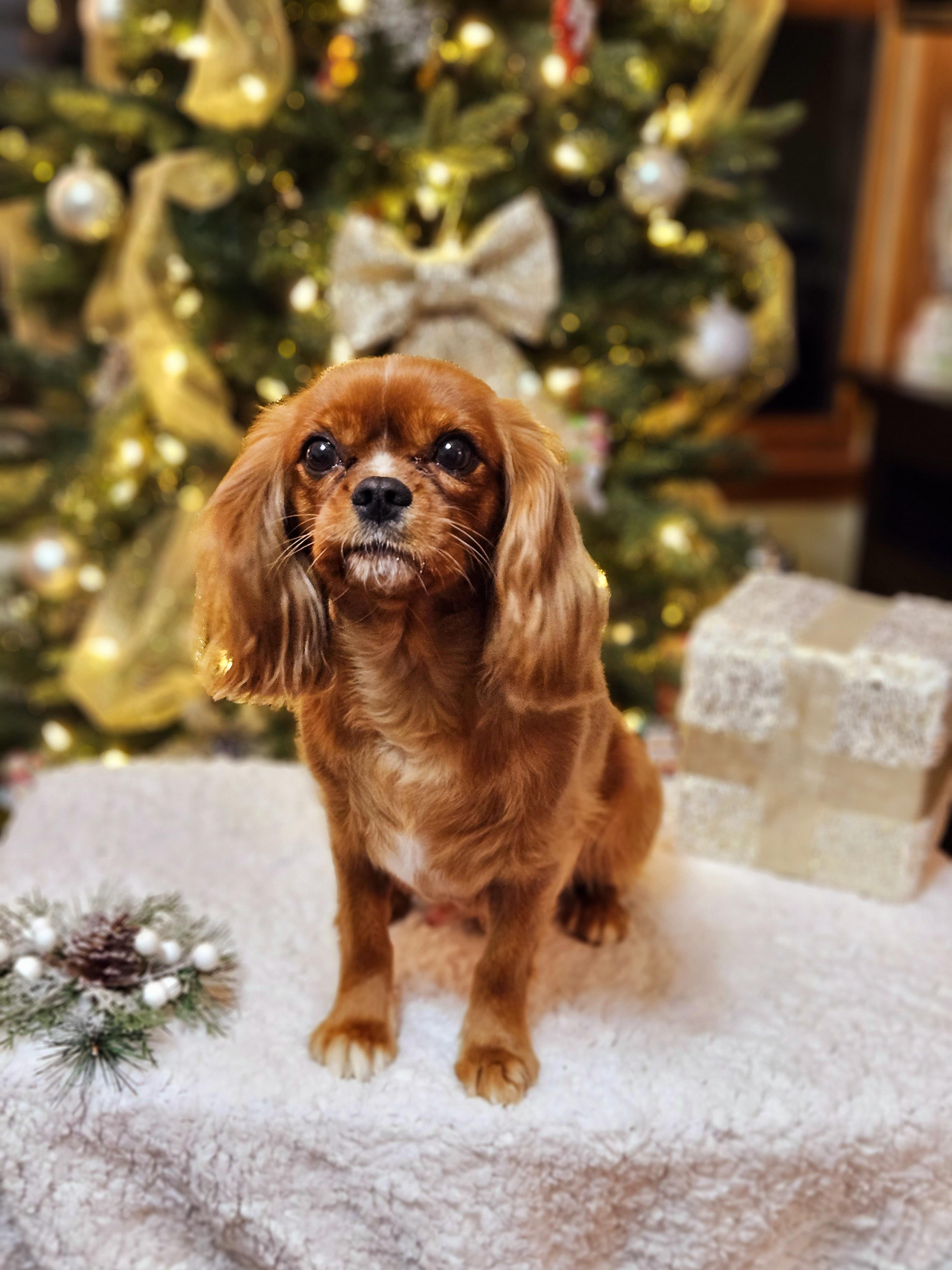 Ruby is a female Cavalier King Charles Spaniel. Carefully selected as a great representative of her breed, Makia decided to make her part of their program. Makia has passed Good Dog’s screening process, which involved a review of their breeding practices, environment, and the mental and physical health of their dogs.