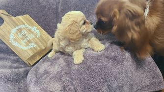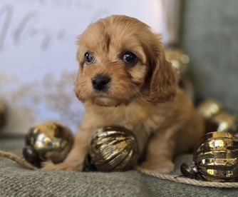 Ginger is a female Cavapoo. Carefully selected as a great representative of her breed, Makia decided to make her part of their program. Makia has passed Good Dog’s screening process, which involved a review of their breeding practices, environment, and the mental and physical health of their dogs.