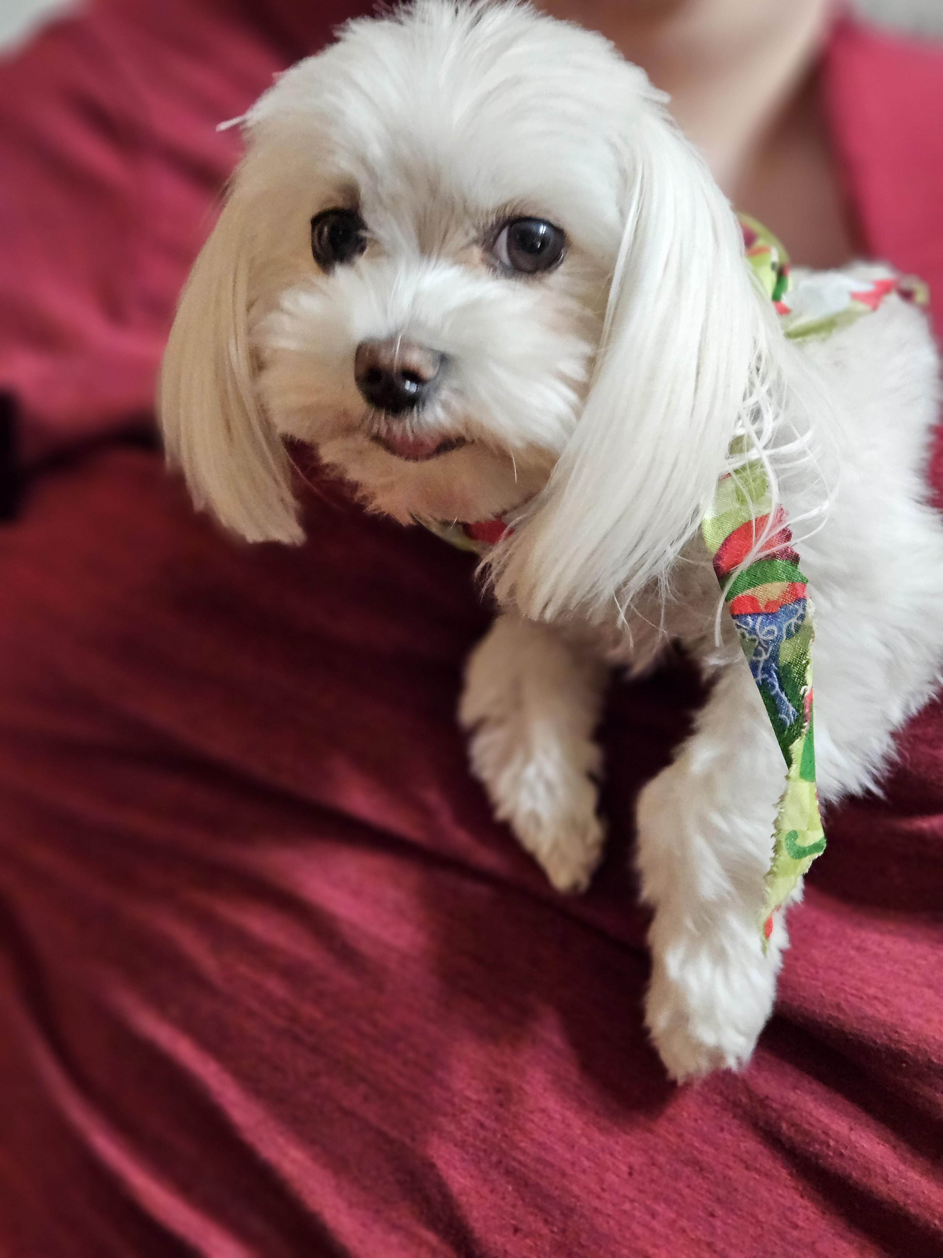 Coconut is a female Maltese. Carefully selected as a great representative of her breed, Makia decided to make her part of their program. Makia has passed Good Dog’s screening process, which involved a review of their breeding practices, environment, and the mental and physical health of their dogs.