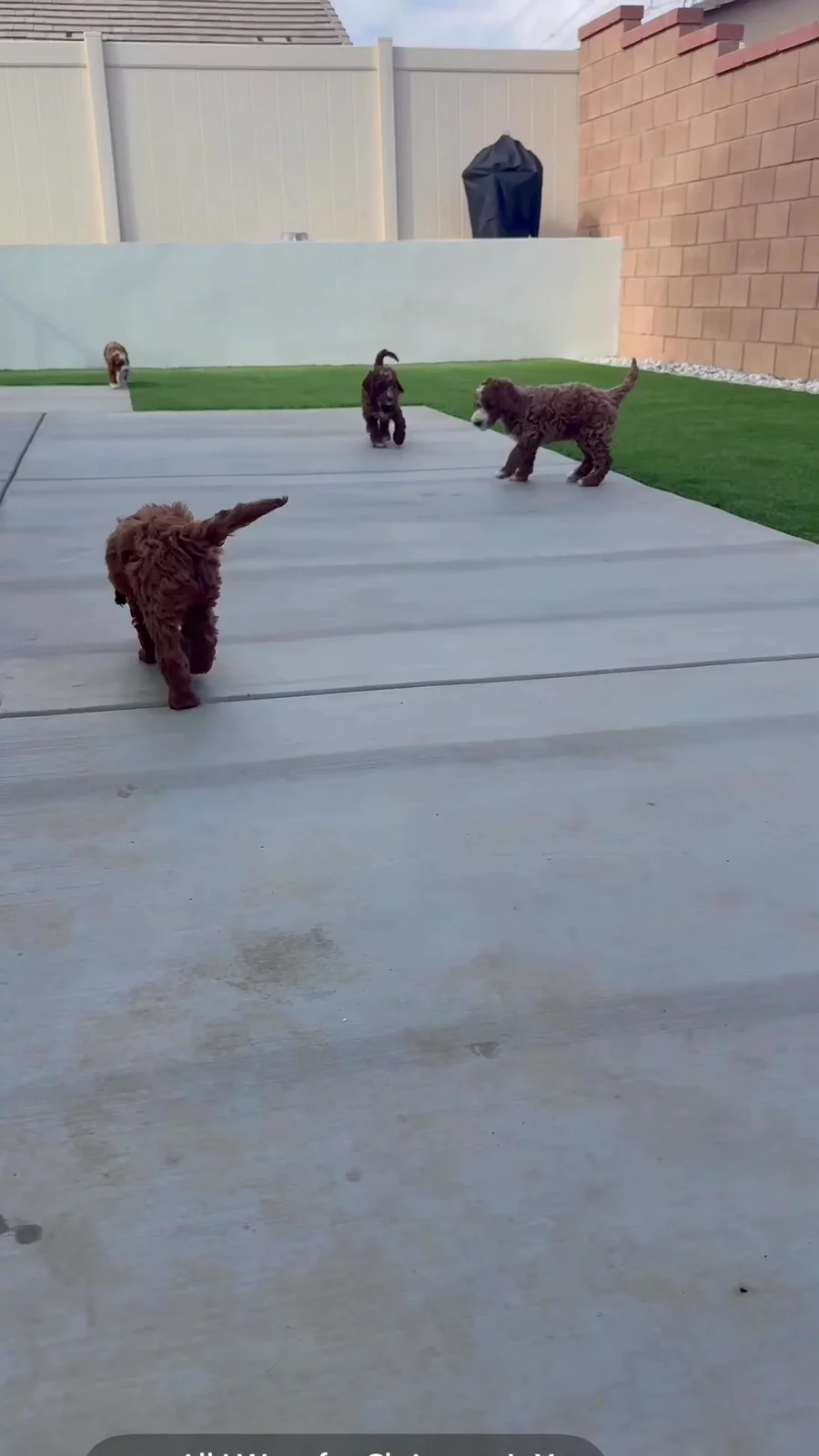 Potty break before it starts raining! These pups are thriving with early potty training every outdoor break, they head straight to the grass. Confidence and good habits start young!