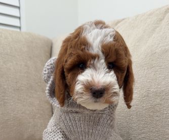 Our puppies include apricot and red. Colors will vary depending on the parent dogs.