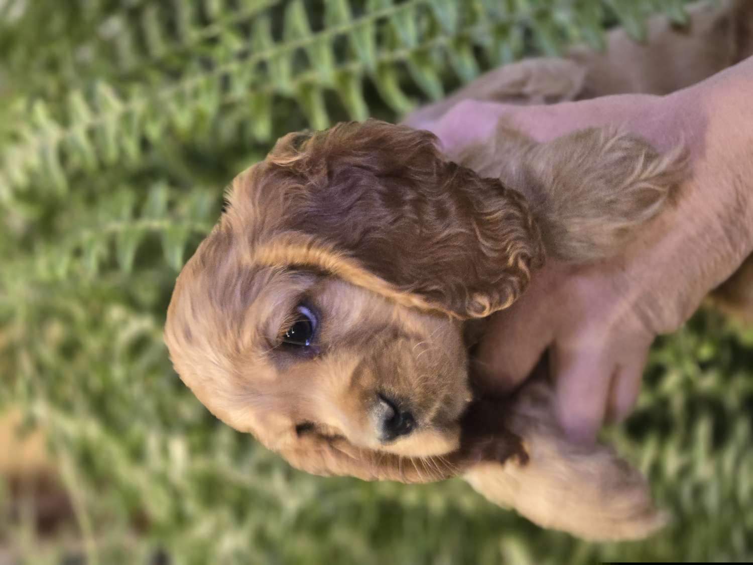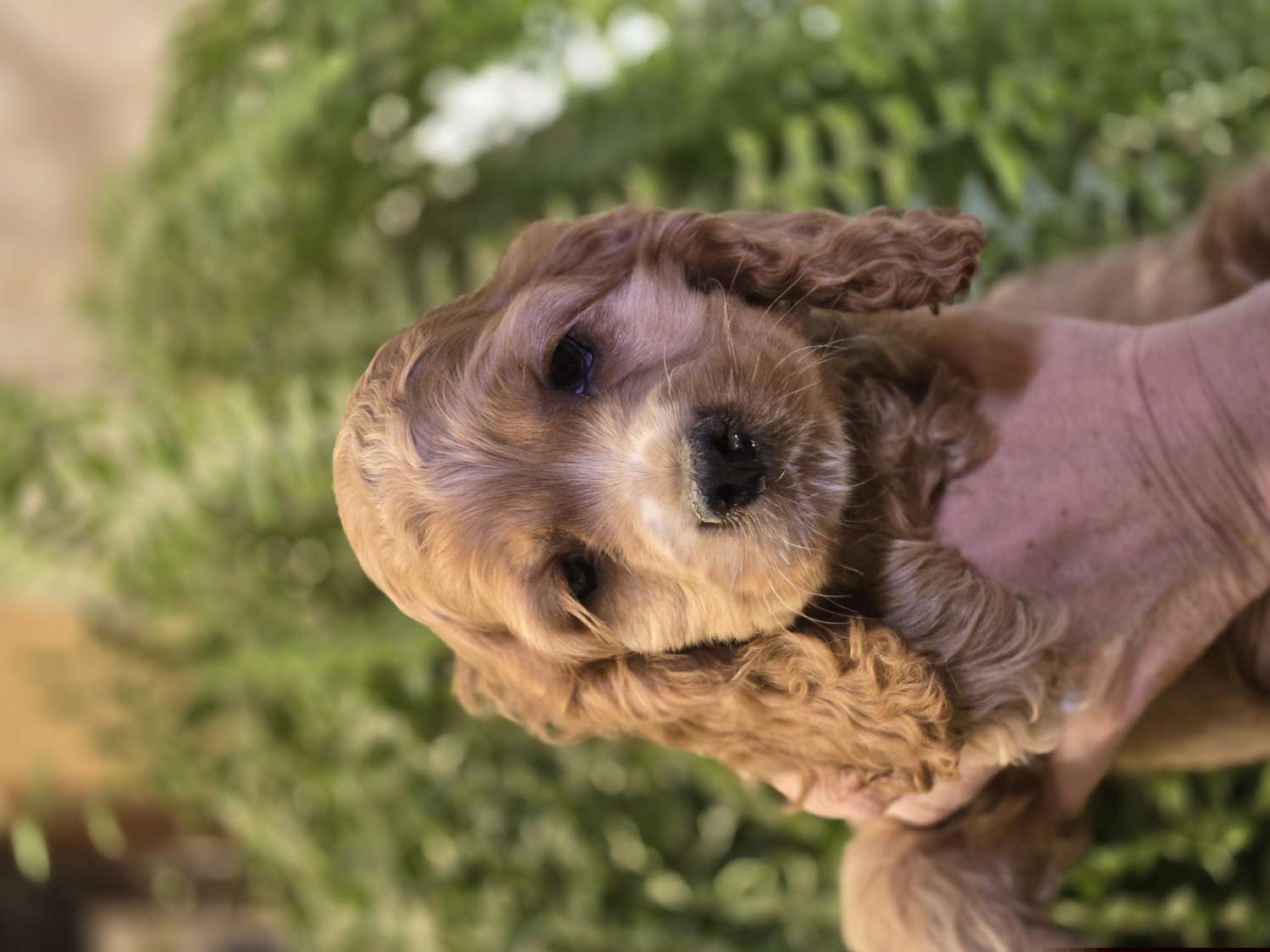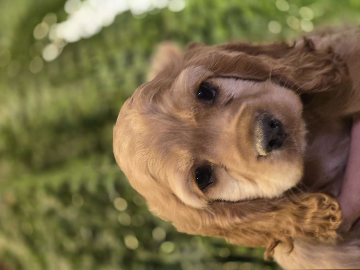 Copper Cutie is a male Cocker Spaniel. Carefully selected as a great representative of his breed, RJ decided to make him part of their program. RJ has passed Good Dog’s screening process, which involved a review of their breeding practices, environment, and the mental and physical health of their dogs.