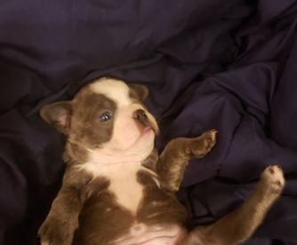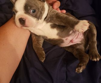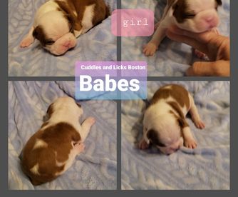 I'm Kimberly S., the breeder behind Cuddles and Licks Boston Babes located in Liberal, KS. I raise Boston Terriers in my home. My dogs are clear for Juvenile Hereditary Cataracts and receive appropriate veterinary care.