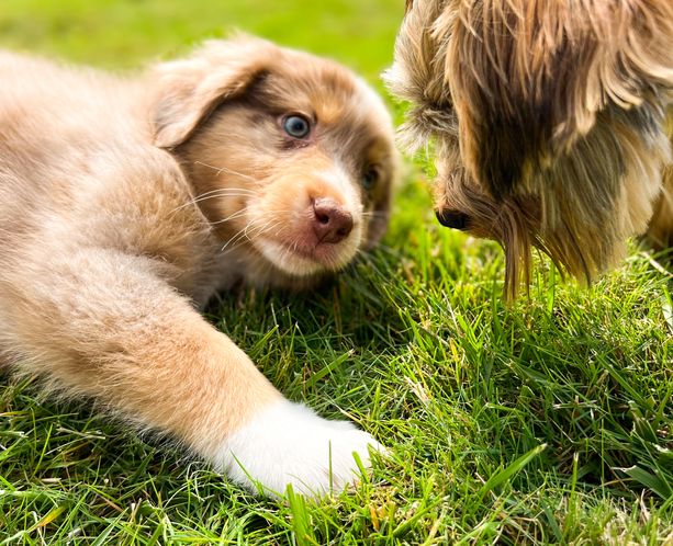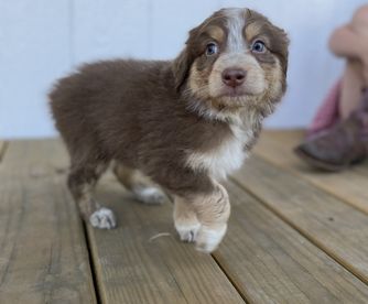Our puppies include red merle and red. Colors will vary depending on the parent dogs.