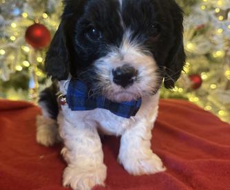Our Cavapoo puppies include chocolate, tri-color, red, brown, blenheim, black and white, black, black and tan, and apricot. Aussiedoodle puppies include black phantom, black and white, and black tri-color. Colors will vary depending on the parent dogs.